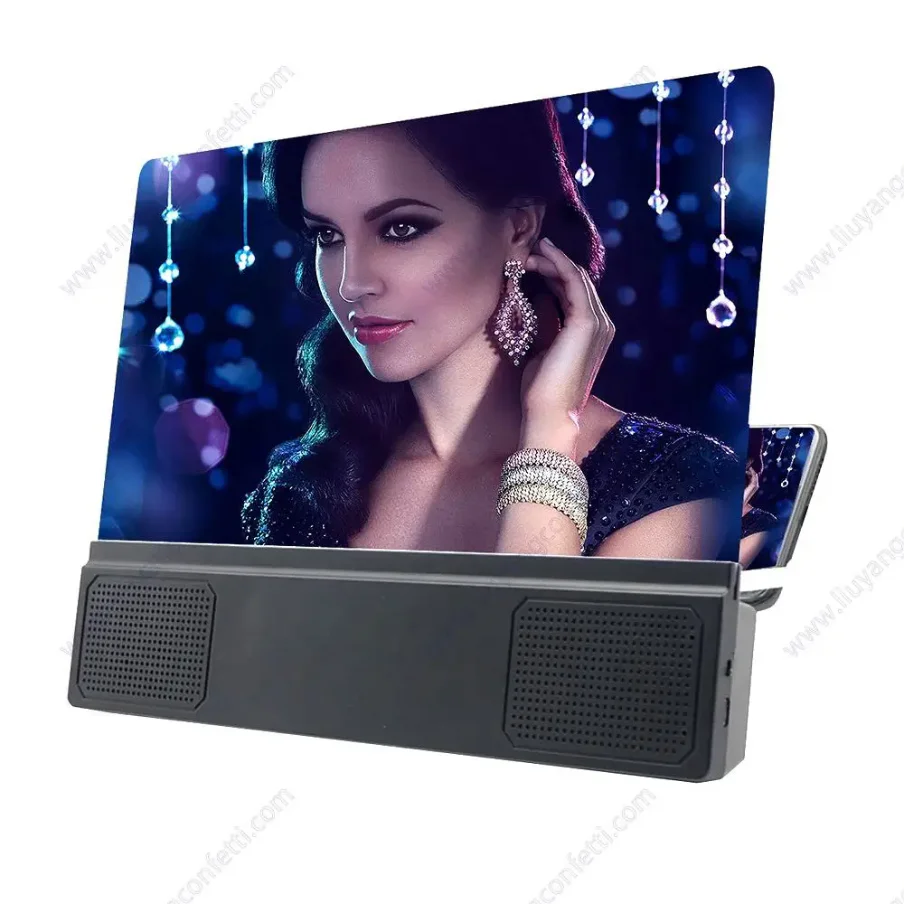 Specification Product name 3D Screen Amplifiers Mobile Phone Material High Definition Acrylic Lens + ABS Frame Size of screen 12inch Net weight of product 360g