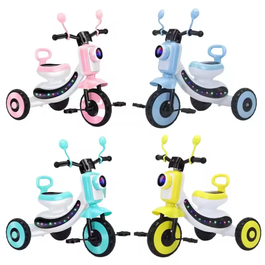 Item No.: OC1034913 Description Baby ride on car with light/music Multifunctional push bike kids ride on tricycle car child 3 wheel with light music MOQ:8CTNS colour:yellow,blue,pink,green product size:65*42*65cm Battery:3*AA (excluded)